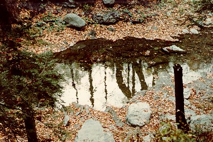 The sky can be clearly seen in the reflection of the pond.